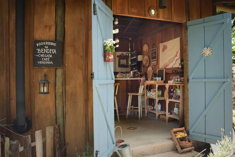 Na entrada do sítio tem o nosso pequeno empório, o “Ranchinho do Lótus”, ponto de encontro dos nossos hóspedes.